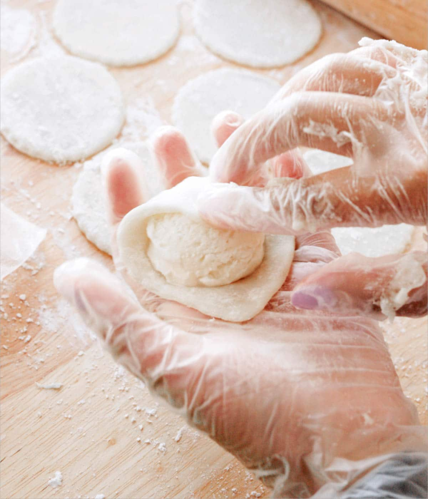 Next, you’ll prepare the dough so it can wrap around the ice cream.